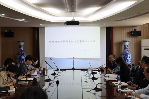 为了全面提高辅导员对学校网络舆情及危机事件的引导作用,4月29日,在行政楼会议室二开展了网络舆情监控与危机突发事件应对处理的业务学习。此次培训由亚非语言学院党总支书记钟伟主讲,学工系统教职工参与学习。