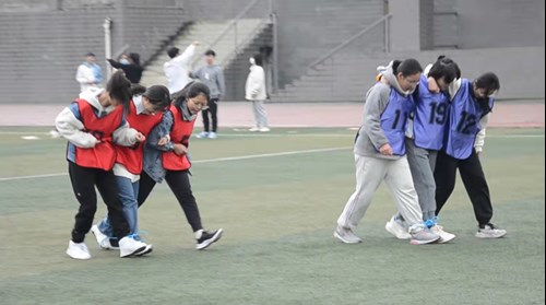 活动中,全体成员分成四小组。通过纸杯传球小游戏,使队员们快速打破尴尬的氛围,快速融入活动。接着开展的“你是我的眼”游戏提高队员们参与活动的热情和积极性,增强了队员们的合作意识和合作能力。最后一项三人四足活动要求每组成员在比赛时步伐节奏协调一致,齐头并进。在比赛之前,四个小组的师生们都积极地练习、研商,在比赛时,每个组的参赛者配合默契,通过呼喊口号,以此来调节步伐节奏。